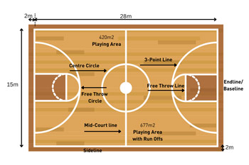في كرة السلة، ملعب كرة السلة هو سطح اللعب، ويتكون من أرضية مستطيلة، مع سلال في كل طرف. تُصنع ملاعب كرة السلة الداخلية غالبًا من الخشب المصقول، وعادةً ما يكون من خشب القيقب، مع حواف يبلغ ارتفاع كل سلة منها 3.048 مترًا. أما الأسطح الخارجية، فتُصنع عادةً من مواد رصف قياسية مثل الخرسانة أو الأسفلت.